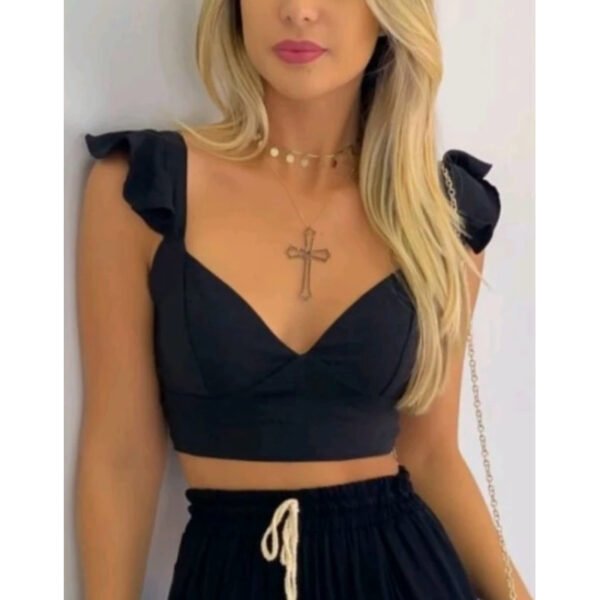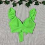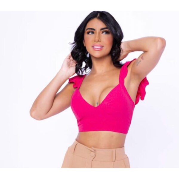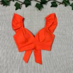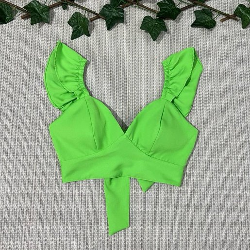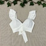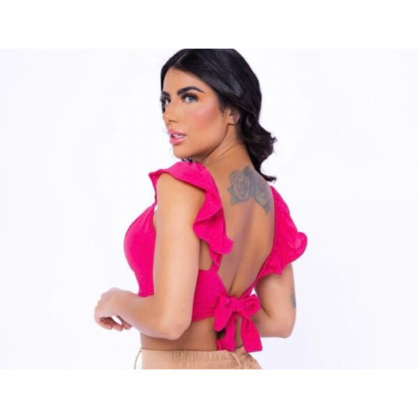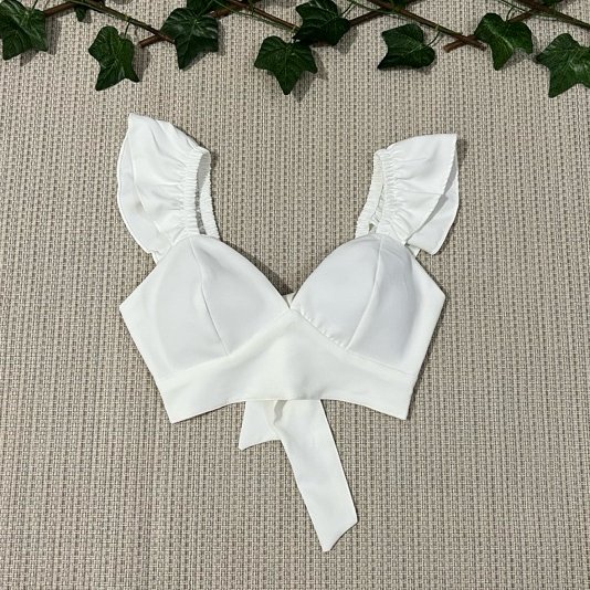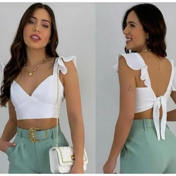 Cropped Alfaiataria Manga Babados Amarração Nas Costas Com Bojo