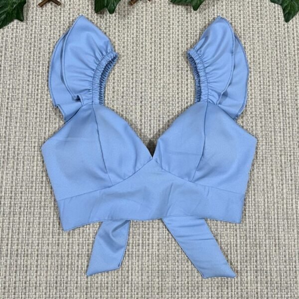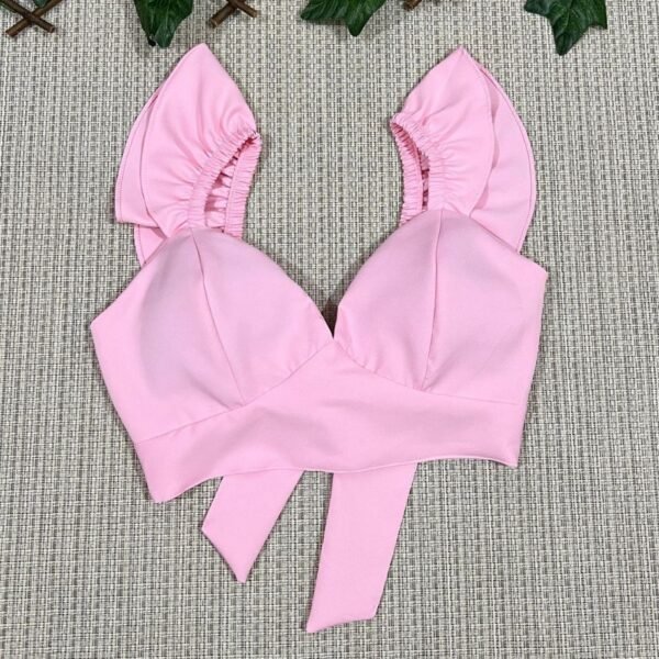 Cropped Alfaiataria Manga Babados Amarração Nas Costas Com Bojo